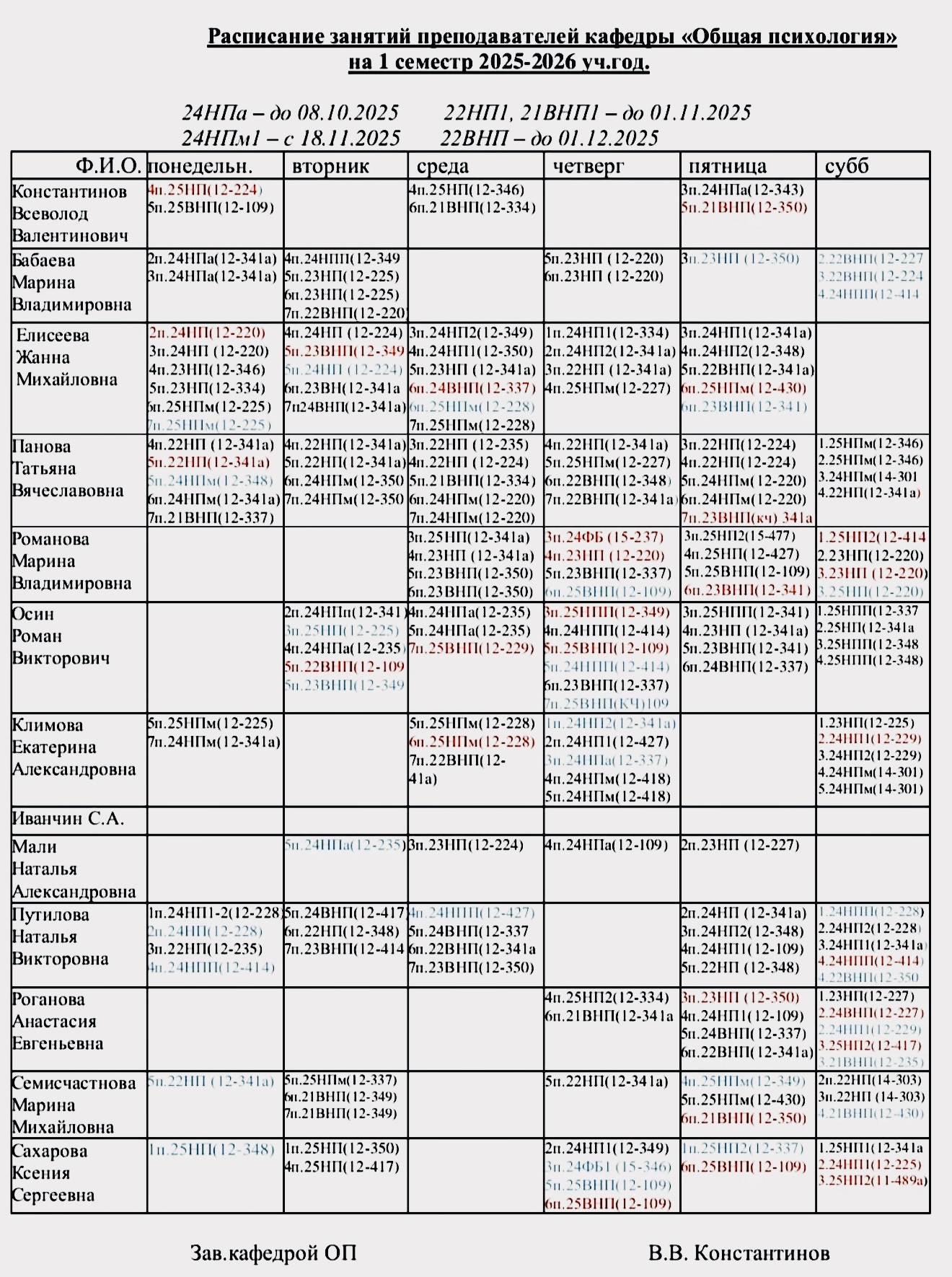 РАСПИСАНИЕ ПРЕПОДАВАТЕЛЕЙ